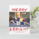 Trendig Merry och Bright Photo Card | Röd Julkort