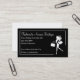 Trendig mode boutique affärskort-mall i en klassdesign med ditt företag namn i elegant brev och enkel layout med en modenistshoppingtjej i bakgrunden och organiserad för dig i förväg.
