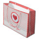 Den här moderna presentsäcken i trendiget har rött rand, ett stort rött hjärta i en röd cirkel och framför allt ett stort "Tack" i ett trendig-skript. Naturligtvis kan ni ändra färg i rand och era egna personliga texter som ni önskar. Lycklig ge! ©Susanne Sacher - Sunny Mind Design 🌞
