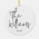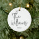 Trendig Modern Black and White Script Bröllop Julgransprydnad Keramik