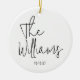 Fira din speciella dag i stil med detta moderna svarta och vita keramiska prydnadsämne, med elegant skript som bokstäver för ett sofistikerat och tidlöst utseende. Perfekt för att hedra minnet av din bröllopsdag eller gåva till nylweds. Den här prydnaden kan vara personlig med ditt namn och bröllop-datum, skapar det vara en minnesvärd keepé. Den minimalistiska svartvita designen lägger till en aning klass till vilken helgdag som helst, skapar den som ett tillägg till träd eller som en tankfull gåva till årsdagar eller firande för första jul.