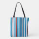 Denna eleganta, trendiga moderna randiga återanvändbara totebag kombinerar komfort och stil. Den sofistikerade designen tilltalar den modeintresserade personen som vill ligga steget före nuvarande trender samtidigt som den fungerar som en praktisk matvarukasse eller strandaccessoire