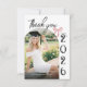 Tacka ja med stil med detta personliga tackkort för examen, designat för att vackert spegla en av livets viktigaste milstolpar. Med en modern, fotofokuserad layout visar detta platta tackkort upp ditt favoritporträtt från studenten tillsammans med elegant "Tack" i skrivstil, en mjuk bågeaccent och en djärv vertikal "2026"-detalj för en chic och modern finish. Den rena designen i kombination med anpassat namn och skola skapar ett polerat och hjärtligt sätt att knyta an till vänner och familj efter din fest.