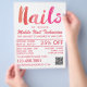 Trendig Modern Rosa Nail Technician, Nail Salon Reklamblad