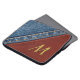 Denim och läder går aldrig ut från stil. Utseendet på denim som är sytt till läder diagonalt över designen. Anpassadets monogram-inledning har ett 3-dimensionellt utseende.