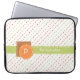 Ett trendig prickat linje mönster laptop sleeve med neutralt rött, brunt och grönt rand mot vit bakgrund, täckt med geometrisk mod fyrkant och cirkeldesign. Anpassa genom att lägga till ditt namn och initialer. Perfekt mode för modern och snyggt kvinna.