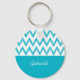 En trendig turkos och vit nyckelkedja med en giglitig hand plockade-färgpenna schevron mönster. Anpassa den här moderna och snyggten vattenblått zigzag-designen genom att lägga till ditt namn.