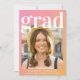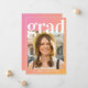 Tillkännagivandekort för trendig rosa och orange studenten med ett foto av grad, grad i ett stort fet vitt teckensnitt och namn, skola- och klassår i enkel modern vit typografi.