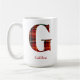 Anpassa den här moderna rött pläderade första G monogram mugg för perfektens julklapp.