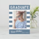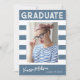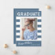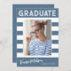 Trendig med fet stil, kort för studenten-meddelande, med inslag för återtext med handskrift. Student-fotot accentueras med fetstilt vitt rand. Kortets baksida ger personlig textutrymmen för information om studenten och framtida resor. Vit skrift på chic, dammig blå eller anpassa bakgrunden så att den passar din skolas primära färg eller valfri färg. Perfekt för gymnasiet, högskolan och universiteten.