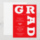 KLASSIFICERING i fetstil, vitt bokstäver på kurvor runt kant på dessa inbjudningar till röda studentfester. SE HELA INSAMLINGEN AV FÖRUTFÖRT färg, pappert tallrikar, blöjor, varv- och bilskyltar och mycket annat i vår butik.