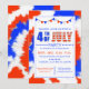 Trendig Red, White & Blue 4:e juli-partiets inbjudan om färgstark bakgrund. Anpassa inbjudan med information om evenemanget, namn och party.