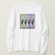 Den här skjortan är definitivt till kattälskaren! Särskilt av svart kattunge! Fyra block av lugnande vattenfärger är bakgrunden till en silhuett av ett mycket fint kattunge med ett långt glatt svan inuti varje.