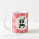 Modern, trendig mugg med ditt monogram initialt i mörk grått på en färgad av kräm på rosa solnedbrytande bakgrund. På den andra sidan står ditt namn på en halvcirkel av gräddvit färgad. Alla färg kan redigeras i designen verktyg.