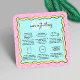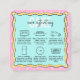 Omvårdnadsinstruktioner för färgkakor i roligten affärskort med plats för ditt företag namn eller logotyp. De här tårtkorten har en tecknad-inspirerad utformning i färg, rosa, blått och gult och innehåller tårtvårdssymboler för varje steg. Perfekt att lägga till i bröllop eller i händelsekakor så att dina kunder kan transportera, lagra och en kaka på rätt sätt.