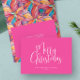 I det här trendiget finns det andra julkort än fotojulkort som har ord "God jul" i elegantens skripttypografi. Använda mallen fält för att lägga till din anpassning. Kortet öppnas för ett unikt och färgstarkt blommönster med vattenfärgspoinsettia med utrymme för anpassningsbarna. Ett unikt och smart val för dina Pinkmas-Julhälsningar kort. Om du vill se fler design som den här www.zazzle.com/dotellabelle Original water color art by Victoria Grigaliunas of Do Berätta A Belle.