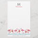 Trendig brevpappermonogram med handmålade flamingofåglar i havsillustration