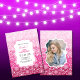 Trendig Rosa Rand Blommigt Fotofödelsedag Inbjudningar