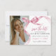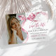 Förhöj din examensfirande med våra snygga och trendiga examens-kort. Med en sofistikerad akvarell rosa slinga knuten till en båge och ditt favoritfoto, smälter dessa inbjudningar elegant samman stil och elegans. Vår lättanvända personaliseringsfunktion gör det till en glädje att inbjuda dina nära och kära. Dessutom finns digital nedladdningsalternativ tillgängligt för dem som älskar en bra blandning av modernt och traditionellt.