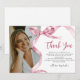 Tacka dina examensfestgäster med våra snygga och trendiga examens-tack-kort. Med en sofistikerad akvarell rosa band knuten till en slinga och ditt favoritfoto, smälter dessa tack-kort elegant samman stil och elegans. Vår lätt-använda personaliseringsfunktion gör det till en glädje att inbjuda dina nära och kära.