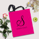 Trendig rosa svart monogram initialt skriptnamn Tote Bag. Lätt att anpassa. Skaffa din idag!