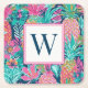 Trendig rosa teal marinblå Pineapple Monogram Underlägg Papper Kvadrat