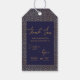 Trendig Royal Blue Guld Intricate Design Bröllop Presentetikett