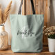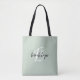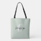 Denna eleganta personliga tote handväskan har en monogram och förnamn i modern svart och vit skrift på en trendig sagegrön bakgrund.