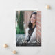 Trendig Script Overlay Two Photo Gradation Notice och Grad Party - Ditt student finns med på vårt meddelande från studenten, i fullt färg, fullt utfaller på inbjudan. Kortets funktioner, handskrivet skript stil-typografi i söt. Vårt tillkännagivande är en inbjudan från både Studenten och Grad-partiet på baksidan av kortet. Det finns också ett framträdande utrymme för gradens foto på baksidan av kortet och det finns gott om utrymme för dig att anpassa informationen. Så söt och bekvämt! Kortet kommer att ingå i en samling.