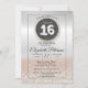 Glitter bokeh ombre på silver Sweet 16 födelsedagsfest inbjudan.