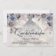 Modern blomster-quinceañera-inbjudan. Design med silverklänning, blomsterelement på en ljus pärlbakgrund. Anpassa ytterligare med dina festsdetaljer på framsidan.