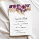 Meddela din bröllop på ett unikt sätt med detta trendiga Spara datum-kort med handmålade fikon, pampasgräs och djupt lila blommor. Den moderna akvarelldesignen passar vackert med höst- eller boho-bröllopsteman. Helt anpassningsbar med era namn, bröllopsdatum och plats – denna eleganta inbjudan är den perfekta starten på er kärlekshistoria.