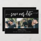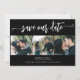 Trendig-skript 3 fotomodern svart bröllop spara datumet