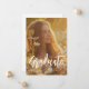 Det här trendiget avslappnad studenten meddelande med två foton från högskolan eller student. Avslappnad, modernt vitt skript visas på framfotoövertäckningen tillsammans med ett foto av student på baksidan med enkelt svart typsnitt för meddelandet. Du kan justera formuleringen på baksidan av kortet för att göra detta antingen till ett enkelt tillkännagivande från studenten eller till en gradpartsinbjudan. En snyggt och enkel design för årets studenten!