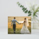 Modern trendig kalligrafi skript Vår äventyr börjar Bröllop Brud och brudgum Foto tack kort