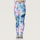 Trendig Snyggt Blå Rosa Lilly Blommönster Leggings.