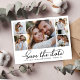Elegant Minimalist 5 Photo Collage Bröllop spara datum Cards, som visar ett modernt kalligrafiskt skript och ett sofistikerat i klassisk svartvitt. Denna samling är särskilt designad för det moderna bröllop, och utesluter en anstötlig och romantisk allure. Med ett snyggt placerat 5-fotorutnätssortering och ett handskrivet swash svan-teckensnitt får de här korten det centrala i contemporaryns elegans. Anpassa enkelt varje kort så att det återspeglar ditt unika stil genom att ta med omhuldade uppgifter om bröllop och bilder, och erbjuda ett förfinat och sofistikerat elak för att tillkännage och fira din fantastiska dag.