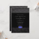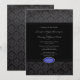 Denna eleganta 5x7 bröllopsinbjudan har en svart damaskmönstrad ram längst upp och längst ner med en enfärgat svart mittdel. Det finns en mjuk svart/grå ram med en oval safirblå och silverfärgad ädelsten längst ner. Du kan enkelt anpassa bröllopsinformationen i mitten. OBS: Den safirfärgade ädelstenen är endast en del av designen, det finns inga äkta stenar på denna inbjudan.