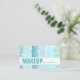 Den här moderna designen har den redigerbara övertäckningstexten "Makeup" med personligen namn över turkoshimmerband. Lägg till information om personligen och medieferensen för social i motsatt riktning. Anpassa genom att redigera texten i textrutan. #makeupartist #makeup #small business #businessCard #gracdesign #design #branding #visiesscard #business #business #businesscarddesign #namecard #marknadsföring #company #business #businesssowner #Flickhead #stil #skönhet