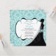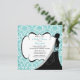 Starta från din höger med trendigets brud inställd på en turkotisk blå dammbakgrund Inbjudningskort för möhippan. Anpassa vår inbjudan med din bröllop-information så är du redo att gå. Finns i andra färg-kombinationer i vår butik på www.celebrateitweddings.com. Ta en titt på våra matchande tackkort-, klistermärken- och möhippa-knappar i vår butik