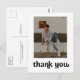 Vi presenterar vårt anpassningsbara trendiga typografi Enkla examens tack-kort – ett stilrent och personligt sätt att uttrycka tacksamhet. Detta trendiga vykort har anpassningsbar typografi och en enkel design, vilket gör det till den perfekta duken för att visa din examenstagares foto och förmedla hjärtligt tack.
