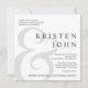 Trendiget Typografi Square Modern bröllopsinbjudningar. Eleganten är sofistikerad, snyggt och ultraurbane, accentuerad med stor färgspridning, minimalistisk enkelhet och typografi med fet contemporary. Oavsett om lycklig kommer att bli en formell svartvit firande, en mottagning för avslappnader eller en medborgarceremoni, ger denna enkla, mångsidiga utformning dig full frihet att ange perfektens tonläge för evenemanget. Anpassa enkelt mallen till kostym om ditt tema - ändra typsnitt, färger, bakgrunden, layouten eller lägg till dina detaljer och till och med ställe ett foto på baksidan. Impress din familj och dina vänner med lyxen till överkomliga priser. Andra färger, storlekar och samordnande tillbehör till kontorsmateriel finns tillgängliga på begäran. Be oss om hjälp om ni behöver hjälp med att skapa era egna unika inbjudningar.
