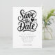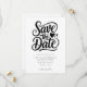 Vänner och familj i inbjudan för att spara datumet för bröllop med denna moderna utformning.