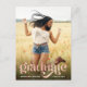 Detta moderna examenskort har trendig typografi och ett stort foto. På framsidan står "Examen" skrivet med falsk roséguld folie-typografi längst ner. Nedan kan du lägga till examenstudentens namn och examensår. På baksidan av examenskortet kan du lägga till ett meddelande till mottagarna och/eller information om examensfesten.