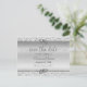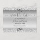Trendigets moderna skripttypografi tillkännager ditt kommande bröllop-datum. Bakgrunden i silver är kantad med glitter damm, som accentueras med silver bröllop ringar.