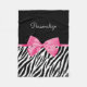 Trendig Zebra tryck Chic Shock rosa Bow och Namn Fleecefilt