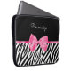 Trendig Zebra tryck Chic Shock rosa Bow och Namn Laptop Fodral