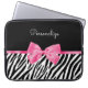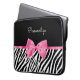 Ett trendig svart och vitt zebra tryck 15'' laptop sleeve dekorerat med ett bild på ett band av chic shock rosa bundet till en gigabond. Anpassa den här moderna rosa och svart djurtrycksdesignen genom att lägga till namn i din favorittjej. Platt utskriven bild, INTE verklig båge.