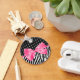 Ett trendig svart och vitt zebra tryck med en chic polka punkt mönster-nyckelkedja som är förskönad med en snyggt shock rosa band bunden i en söt gigabb. Detta moderna och flickaktigt djurtryck och tillbehör till polkadot mode är en platt tryckt bild som inte innehåller något egentligt band.