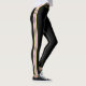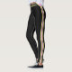 Trendiga 3-randiga leggings med violetta och gula ränder på svart bakgrund. Denna randiga design är tänkt att få dig att se smalare ut. Texten "Om sacred Om" på framsidan kan anpassas. Perfekt för alla.